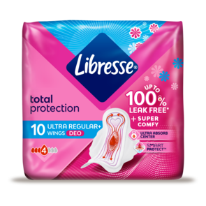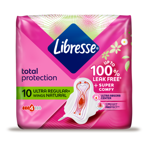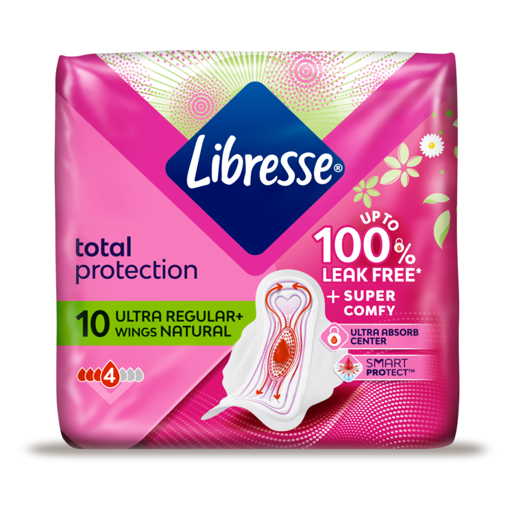 Total Protection -kuukautissiteet tarjoavat jopa 100 % suojan ohivuotoja vastaan* ja erinomaisen mukavuuden, jotta voit nauttia päivästäsi täysillä. Uusi SmartPROTECT-järjestelmä yhdistää imuytimen ja ainutlaatuiset imukanavat, jotka lukitsevat jopa yllättävät menkkapurskaukset välittömästi.